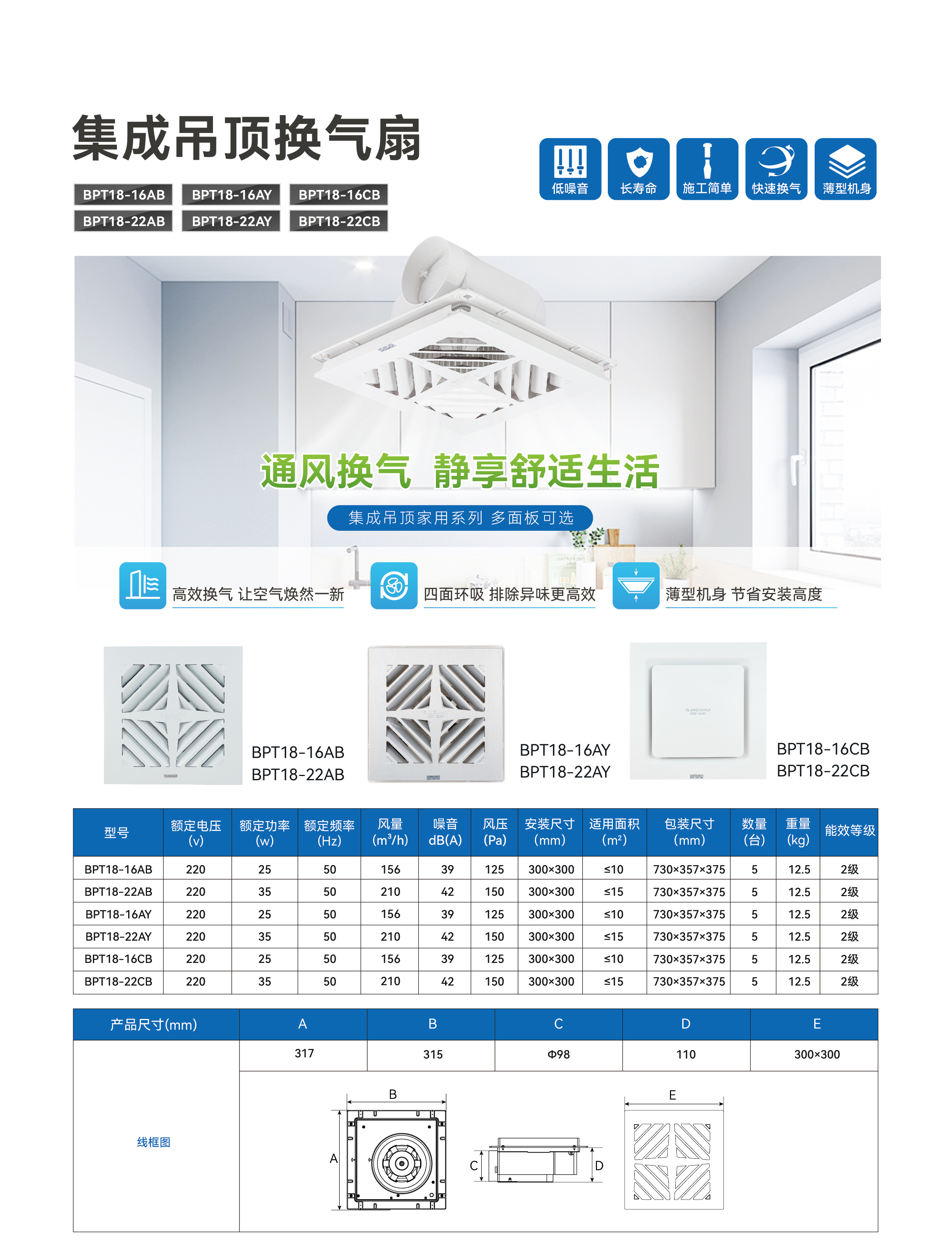 ● 高静压扇叶 低噪运行 强劲换气
