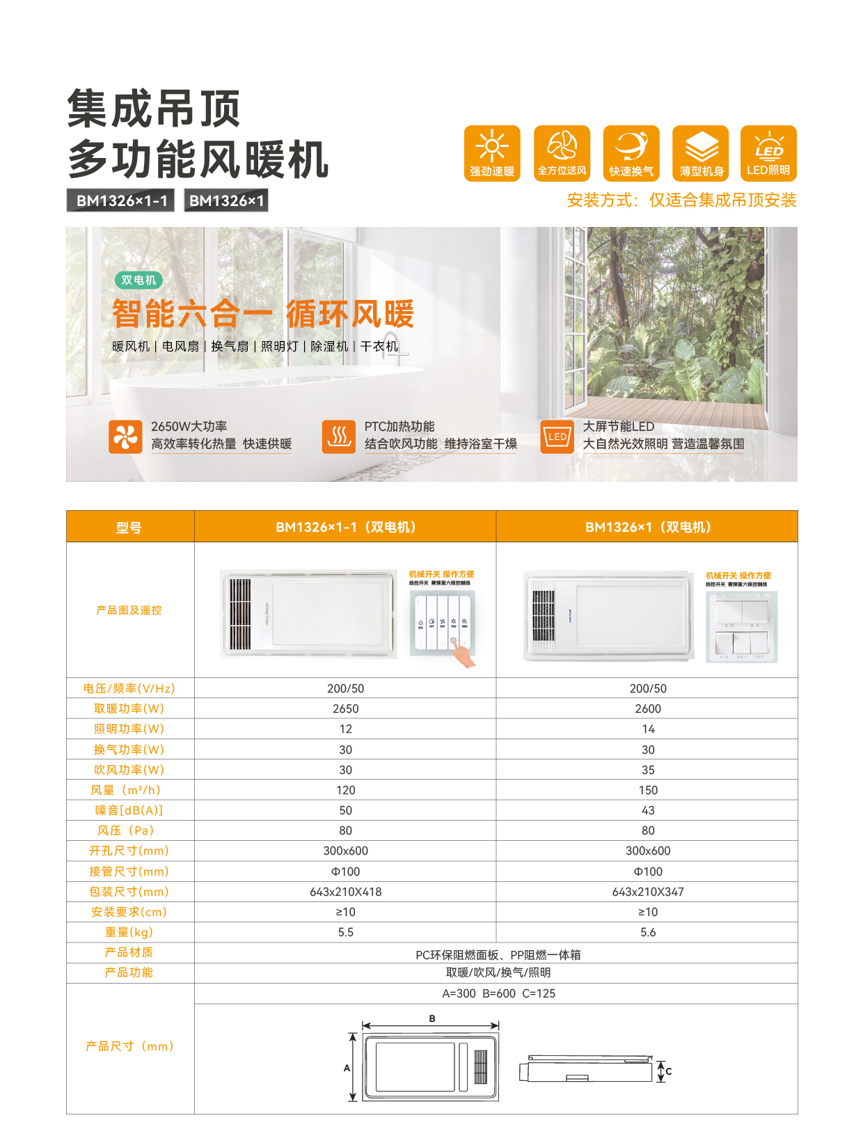 集成吊顶多功能风暖机BM1326x1